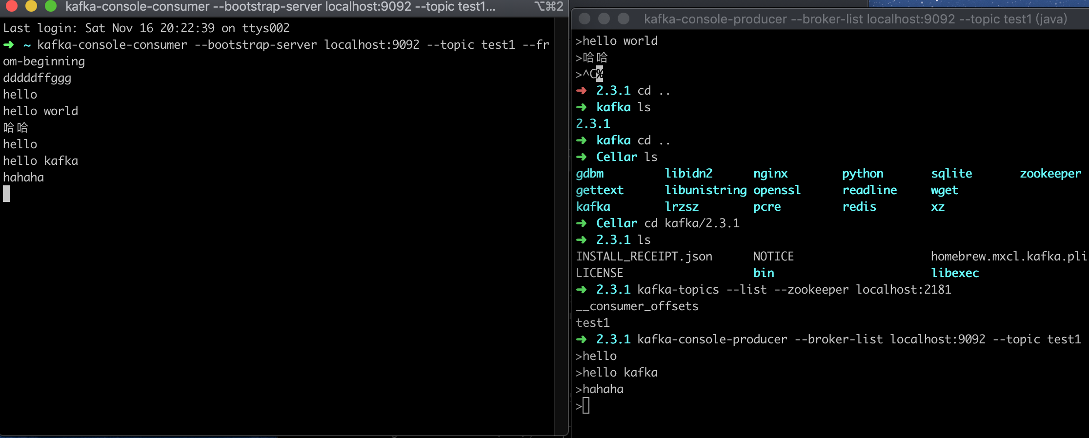kafka-console-consumer --bootstrap-server localhost:9092 --topic test1 --from-beginning